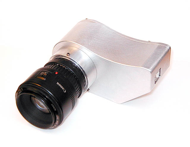 A 50mm 1:1.8 prime (Canon EF) attached to the Artemis 429. The crude self-made T-to-EF -adapter has an in-built UV/IR-block -filter (Baader) mounted semi-permanently. It's possible to attach another filter on it.